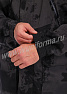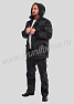 Костюм мужской состоит из куртки и брюк. Куртка удлиненная прямого силуэта, с застежкой на тракторную молнию с ветрозащитным клапаном на липучках "Velcro", воротник-стойка. На куртке два нагрудных кармана с косым входом на молнии и два нижних накладных кармана с клапанами и застежками на липучку "Velcro". Куртка имеет капюшон с возможностью регулировки объема . На рукавах куртки расположены карманы с застёжкой на молнию.
